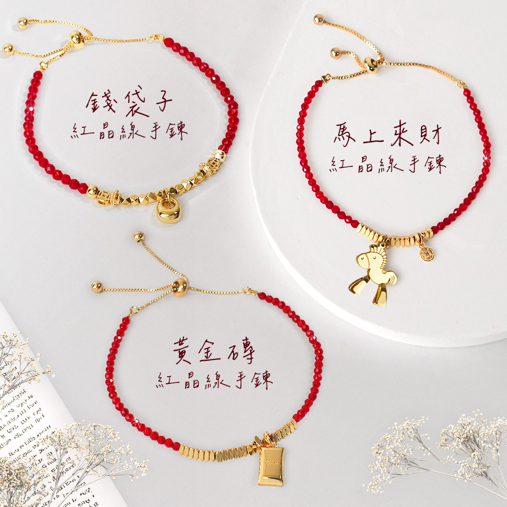 財神爺最愛的「紅」與「金」配色開運手鍊系列,送禮自用兩相宜。