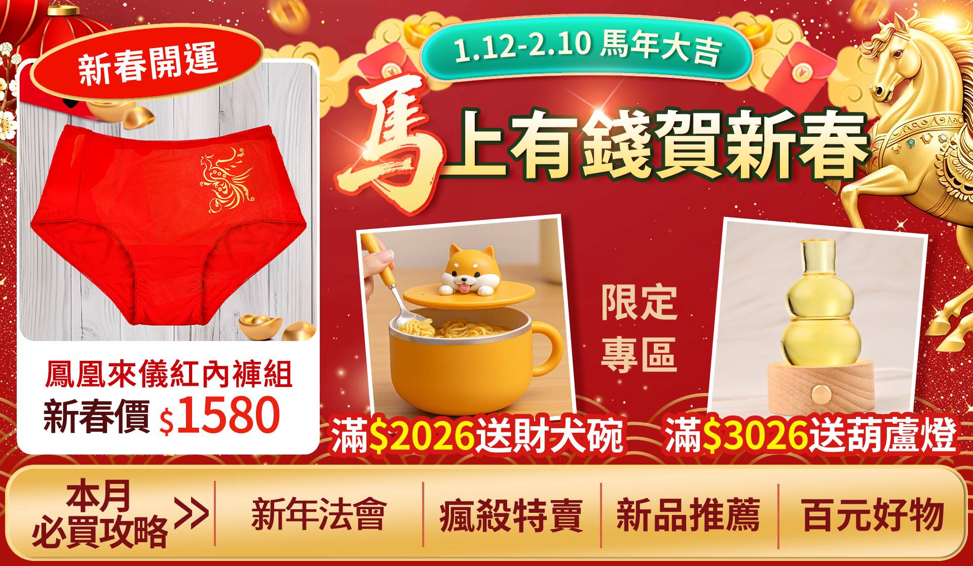 【01/13(二)節目超好康抽獎 2026新春旺運艾草御守組】抽1名 抽獎公告 【01/06(二)節目超好康抽獎 馬上發財旺厝大吉合/馬上來財紅晶線手鍊/錢袋子紅晶線手鍊】抽1名 得獎公告 【12/23(二)節目超好康抽獎 鳳凰來儀開運紅內褲/貔貅駕到開運紅內褲/鈔能爆發小人襪3件組】抽1名 得獎公告 【12/09(二)節目超好康抽獎 五帝錢鎮煞風水布簾+果然好運 風水布簾地墊套組】抽1名 得獎公告