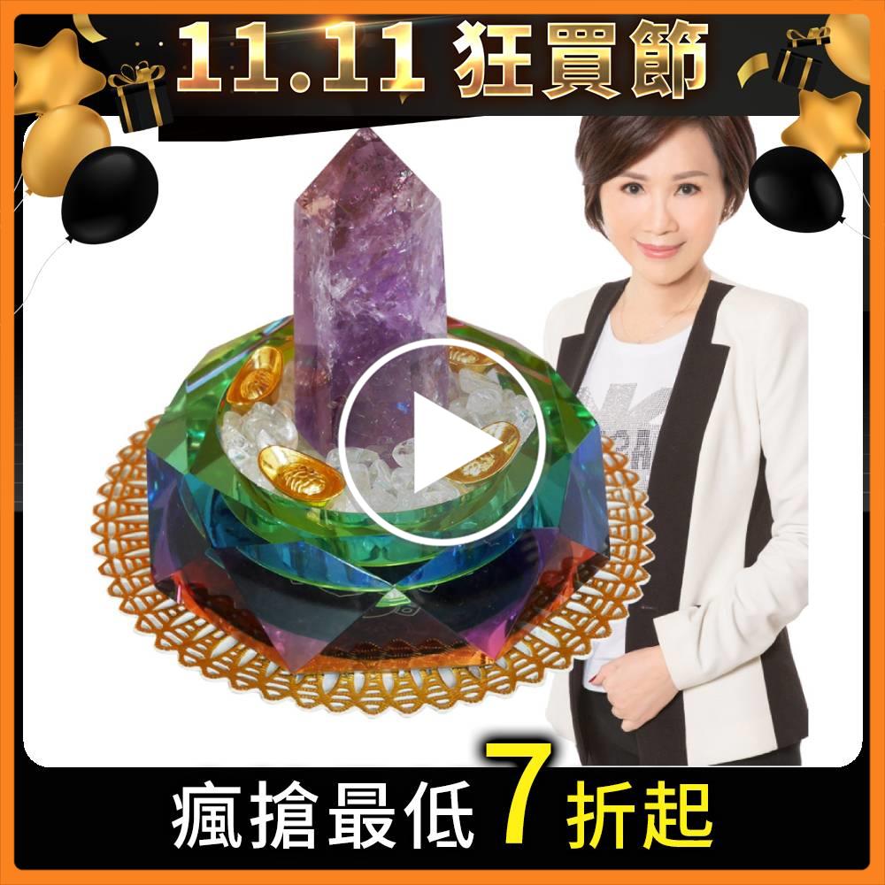 紫金貴人紫晶柱擺件,選用有貴人之石稱號的紫水晶,結合水晶柱尖端的反射作用,以六角多面折射設計來全方位化解空間壓樑煞氣,迅速補充、強化自身的能量磁場,能改善空間中所有不良磁場的干擾,並有效凝聚貴氣人脈磁場,吸引頻率相同之貴人提攜、相助,大賺業務人緣財,事業更上一層樓,在水晶盤底印有六字真言,能破除工作上小人阻礙,最後搭配四方金賺元寶&白水晶碎石,鎮守財庫,將能量磁場獲得無限放大!