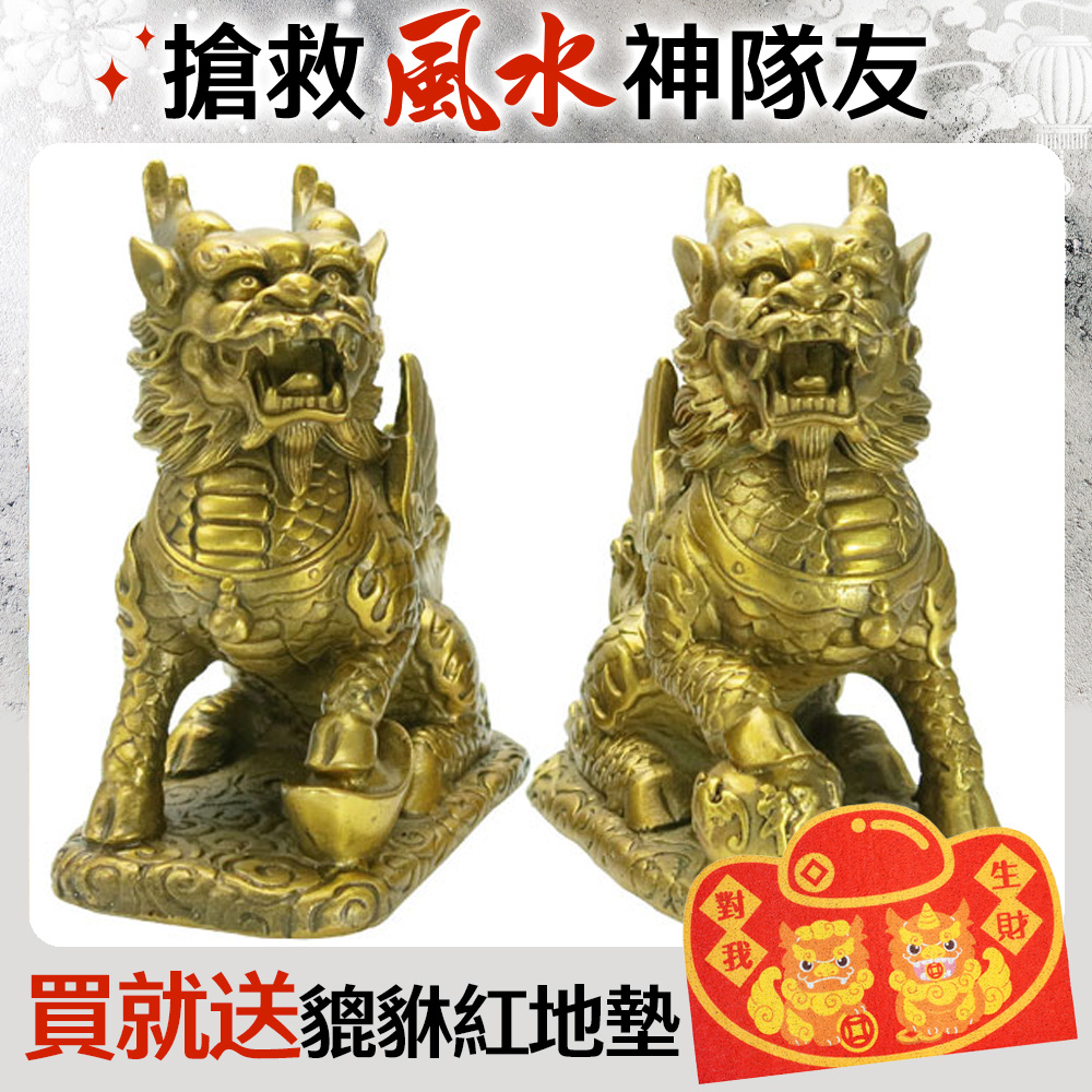 麒麟:古時稱為「仁獸」,為吉祥仁慈之瑞獸,有護宅和招財進寶作用,被稱為「風水獸之王」。若有居住不安寧、常生病、多意外災害者,藉由麒麟能消災解難、驅除邪魔、化解煞氣、居安引財、化煞為財,可說是居家風水招財改運的最佳法寶。