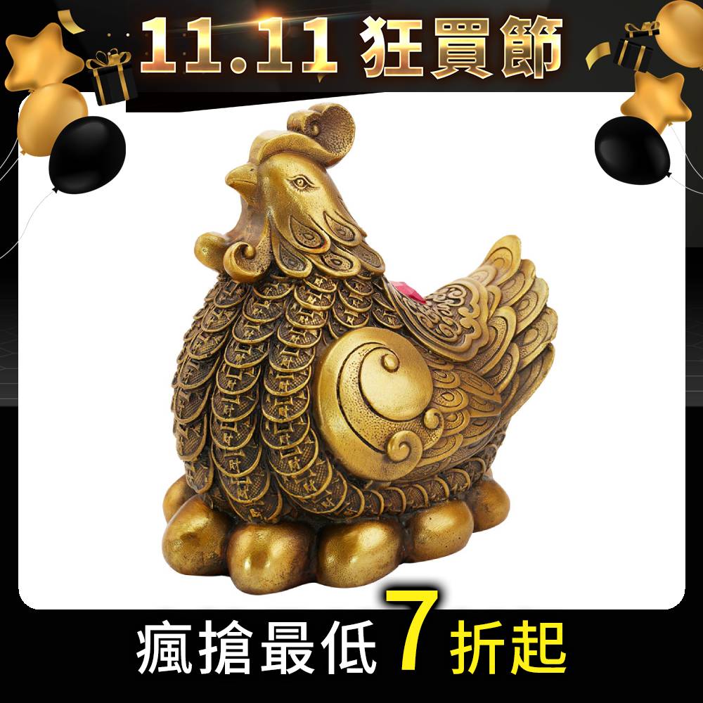 生財金雞母黃銅擺件全身以黃銅財質鑄造,開運效力獲得加倍升級,並融合四大招財開運設計於其中-(1)生財母雞孵滿金蛋10顆,象徵生財致富、十全十美(2)古銅錢羽毛串連全身,家中財氣互相牽引、財源不斷(3) 雞背上鴻運大鑽,啟動居家完美招財磁場(4)如意鎖圖騰環繞,鎮守財庫入口。若能以專屬開運祕法供養雞母,雞母會守護家中財庫,咬錢回家並孵財生錢,護佑財運大發利市!