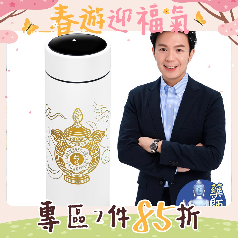 水是有記憶力的可以接受環境中的能量,因此裝在有開運設計的杯具中就能接收其開運能量,而我們也就能透過飲用開運杯中的水有效提升運勢!「藥師心經安康保溫杯」此款杯身圖騰為命運好好玩專利獨家設計,其上印有般若波羅密多心經,不但以心經加持杯中水,正面印有福智圓滿寶瓶&藥師佛心咒,淨化不良能量磁場、消除業障煞氣,護佑事事吉祥、天天喝平安水!