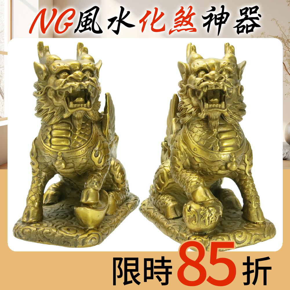 麒麟:古時稱為「仁獸」,為吉祥仁慈之瑞獸,有護宅和招財進寶作用,被稱為「風水獸之王」。若有居住不安寧、常生病、多意外災害者,藉由麒麟能消災解難、驅除邪魔、化解煞氣、居安引財、化煞為財,可說是居家風水招財改運的最佳法寶。