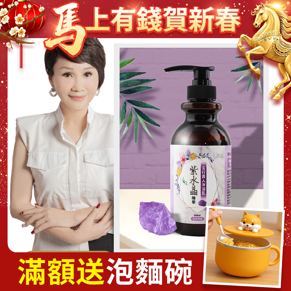 不管是上班、出差或是旅行,在外忙碌奔波一整天,身上會沾染、吸附許多負面能量和穢氣,若沒有徹底清潔和淨化,會導致運勢低迷、破財不順、處處犯小人……除穢淨化一點都不難!每天洗澡沐浴除了洗淨塵垢,也能幫我們帶走穢氣、負能量。全新的「紫水晶精萃.五行貴人沐浴乳」採用五大補運草本配方—(木)艾草、(火)玫瑰、(土)黃桂花、(金)橙花、(水)藍風鈴,補足本命五行所缺、廣招五方貴人!獨家配方再跳級!以科學技術萃取、添加專門招貴緣、旺金緣的貴氣之石【紫水晶】,全面提升自身氣場形成能量防護罩,讓你元辰光彩、貴人左右逢源!不只如此,全新配方不但【強化滋潤度】還特別以清新恬美的【桂花香】為主香調,讓每天的沐浴時光都是一場深層淨化、靜心療癒的身心靈SPA!