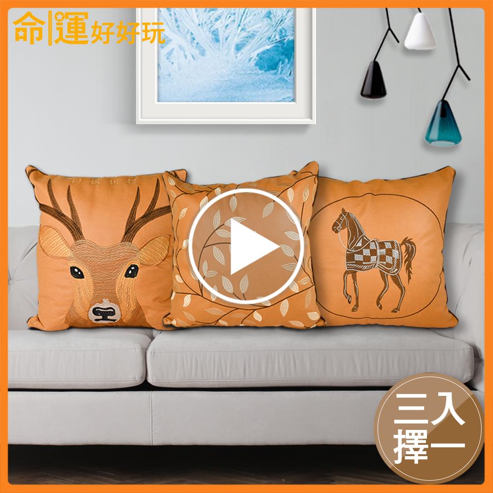 (財鹿亨通/馬上有錢/葉葉致富)繡線抱枕x1入