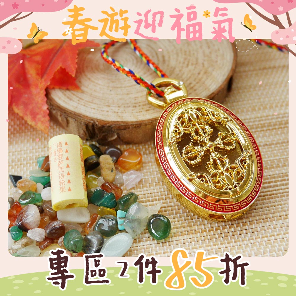 盒上雙面金剛杵、六字箴言圖騰,能斷除人生煩惱災禍、以觀音願力加持,形成平安結界。犯太歲、八字不佳、體弱氣虛者皆適合佩帶。
