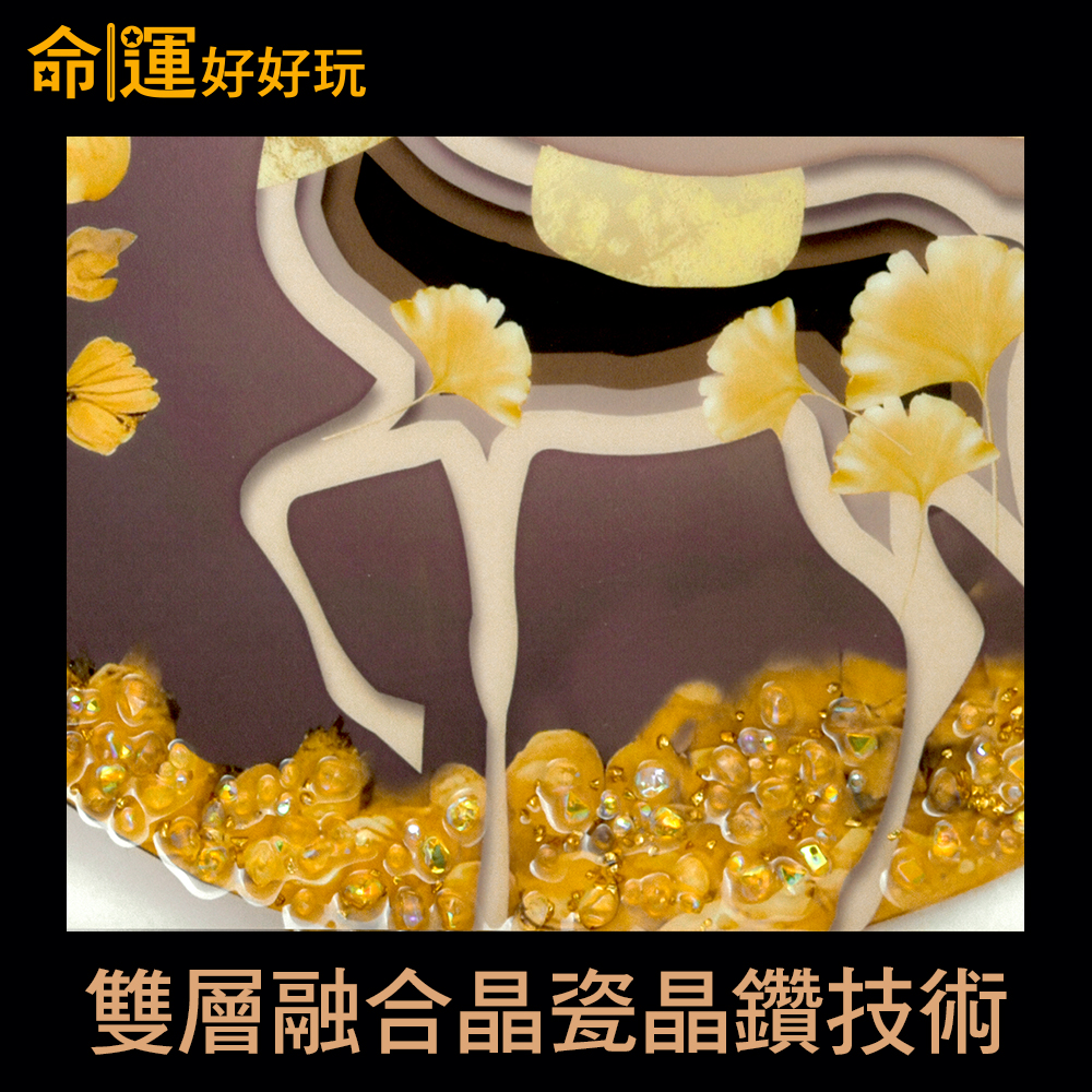 能量翻倍關鍵「晶瓷技術」,運用了熱熔烤瓷技術將水晶和白鑽置於畫作之中,打造出金光乍現的3D立體畫面感,啟動招財能量,而雙層融合設計工藝,可使畫作長久保存不褪色、耐水防潮抗氧化,且製作過程中未參雜空氣與雜質,表面呈晶瑩剔透感,將空間營造出非凡大氣的氣場。由於晶瓷畫以高級水晶作為原料,所以磁場能量遠高於一般印刷風水畫作。