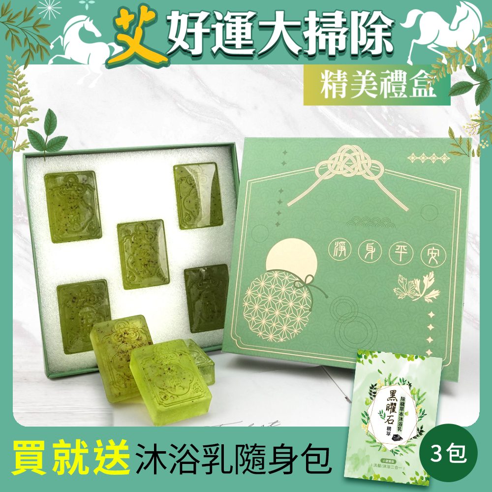 自古以來,艾草為中醫常使用的草本植物,所以又稱為「醫草」,主要是艾草有許多療效,包括:袪濕、驅毒、散寒、鎮靜等藥理上的功用;而【平安御守艾草皂】就是守護您的最佳聖品,選用艾草絨+艾草精油雙效融合,實現雙倍除穢力!結合「五行補運配方」(木)艾草、(火)玫瑰、(土)桂花、(金)橙花、(水)藍風鈴,補足五行所缺,另添加「天然海鹽」–大自然礦靈之物,能將化煞除穢能量發揮到極致!最後以獨家「平安御守皂印」設下守護結界,讓你出門自帶防護罩,皂你全身平安!