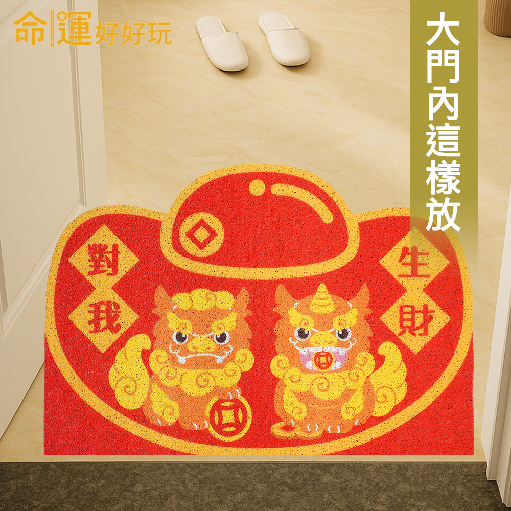 大門是居家財氣的入口,而地墊正是進門的第一道關卡,選擇尤為關鍵。紅色地墊象徵喜氣與鴻運,是最能接引地氣、催旺家運的首選。湯鎮瑋老師特別依照「文公尺吉數」設計尺寸,並結合流年風水概念,以元寶造型紅地墊喜氣迎春,左右雙貔貅快速聚財吸金,再搭配「對我生財」吉祥字樣,納財聚福、財運亨通,並附贈獨家「七星陣卡」祕法加持,全面放大財氣磁場,助您財源滾滾、富貴臨門!