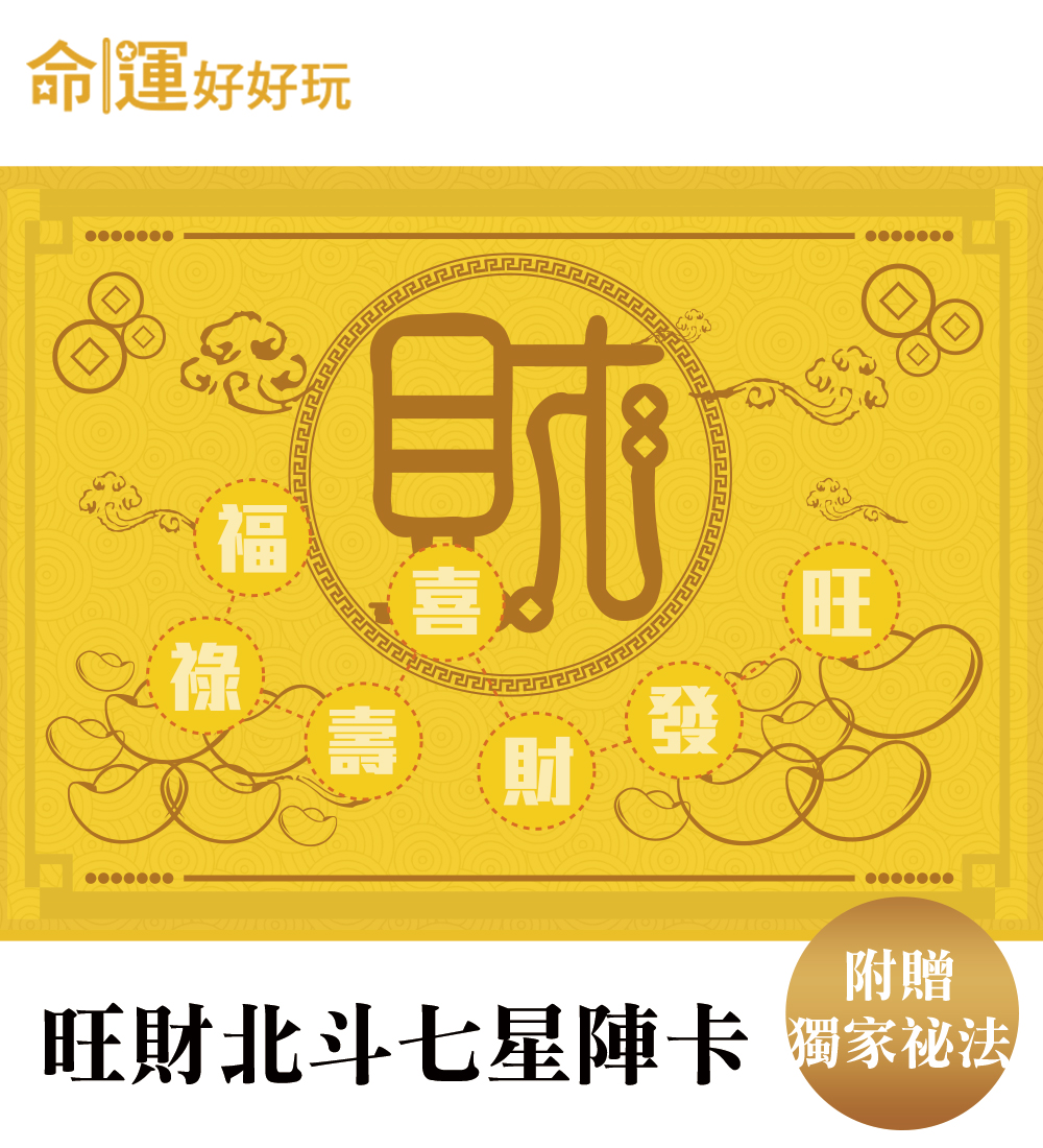 特別附贈七星陣卡,只需準備7枚1元硬幣,分別貼於「福、祿、壽、喜、財、發、旺」方位,置於地墊下方,即刻啟動七星護佑,讓財氣八方聚、步步高升。