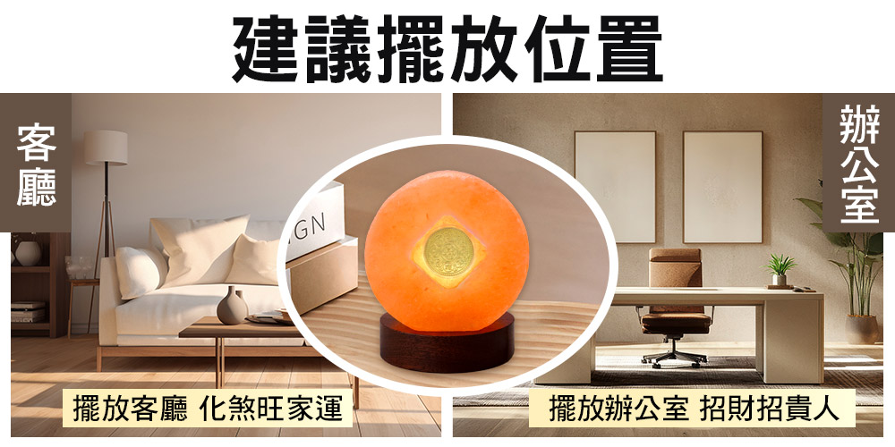 客廳為家中的各種氣運匯聚之處,在家中客廳擺放錢母鹽燈,可以化財煞旺家運,增加全家財富能量。