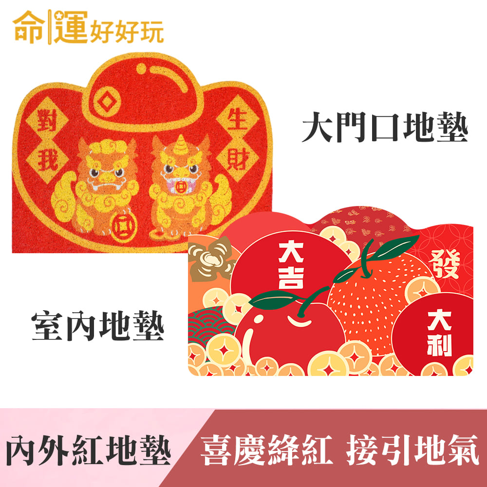 今年特別設計這款「吉祥開運水果造型地墊」,以紅、橘色調象徵大吉大利+開運水果圓潤飽滿造型,搭配遍地錢幣;象徵食祿豐收無缺,闔家財運興旺!擺放在廚房=家中財庫之地,須隨時保持地面乾淨,有助於守住財氣!放在臥室也能有效催旺貴人財,讓你人脈生錢脈! (果然好運地墊單品詳介)