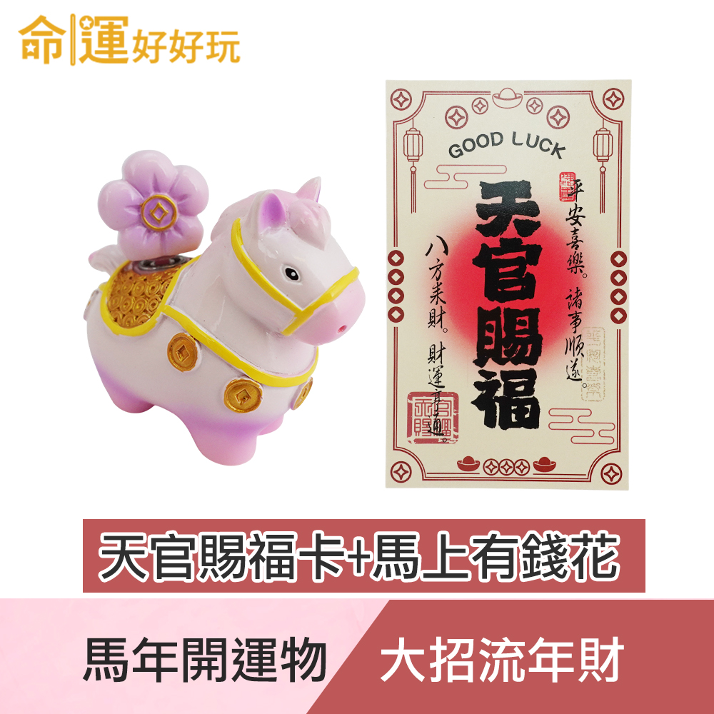馬年最應景的吸金小物「馬上有錢花擺件」,療癒圓潤造型,順時針旋轉馬背上的花朵,象徵動中生財,隨時有錢花;在外奔馳吸金,財富留得住!新的一年,讓你365天都不缺錢花,並如同這匹招財千里馬一樣勇往直前,搶錢第一快!在運勢較為低迷時記得順時針轉動馬背上的「有錢花」,可達到逆勢轉運之效。