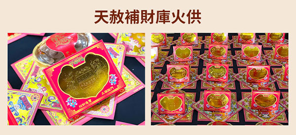 焚燒天赦補財庫金紙組合,替個人修復破損財庫、擴展納財規模,透過火的力量加速轉運,把握流年財運的黃金轉捩點!每位報名祈福信眾皆有專屬的火供組合內容: