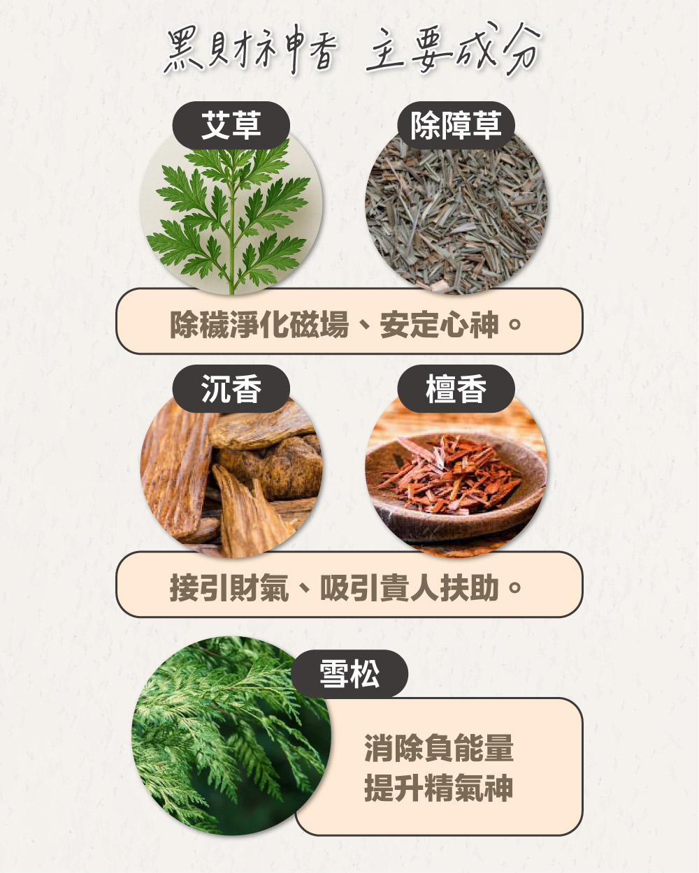 《黑財神引財環香》以圓為形,象徵財庫圓滿、財源不斷。點燃環香如同點亮自身財庫,隨著裊裊香煙散布整個空間,不僅能淨化穢氣、清除阻礙,更能召喚八方財氣、穩固財庫磁場,正好符合先除穢、再招財的命理概念!