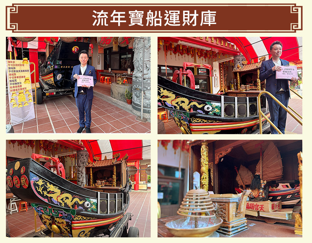 恭請神龍武財神親自出馬,搭乘滿載流年財富的馬年財寶船奉天承運、巡視四方,為信眾開財路、擋災劫、補財庫、添富貴!讓你財源滾滾、收入倍增,抓住今年每一波發財契機。無論你是事業轉型、創業起步、轉職求機會,或單純想提升財運、守住錢包,馬年財寶船都將帶你揚帆順風、趨吉避凶,一路發到底!