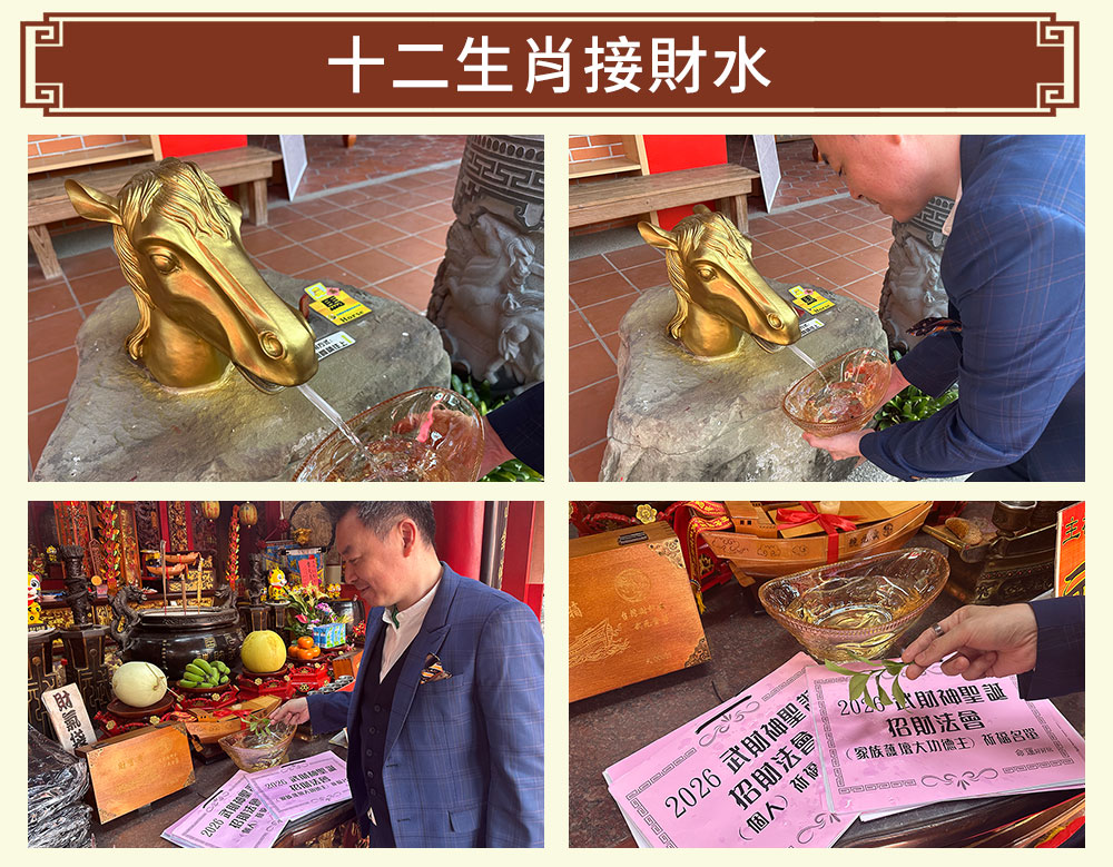 象徵財氣流轉、生生不息的12生肖銅雕法陣,接下馬年最旺流年財運之水,啟動「活水生財」,讓財氣如泉湧、日日進帳!活水滾動、源源不絕,不只吸金、還能聚財鎖財!每一尊生肖銅雕皆蘊含本命貴人之力,12生肖貴人輪番上陣、幫你轉運補財!藉由法會打通財路、解開卡點,整年度都如活水循環、錢財不斷來,富貴連連!