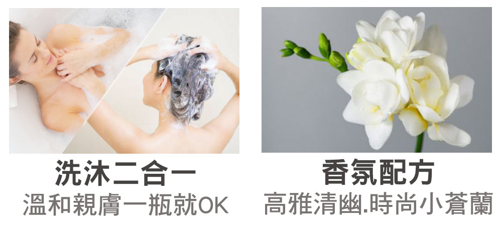 保留經典2◆香氣選用廣受好評的時尚優雅的小蒼蘭香氛作為主調,清新不俗、溫柔包覆,讓每一次沐浴,都是一場沉浸式的身心靈療癒 SPA。洗沐二合一的貼心設計,無論居家日常或外出旅遊,不佔空間、收納輕鬆,一瓶搞定!