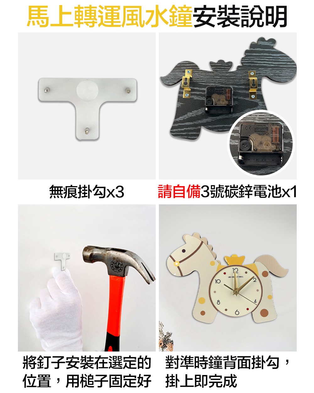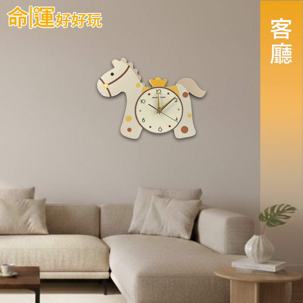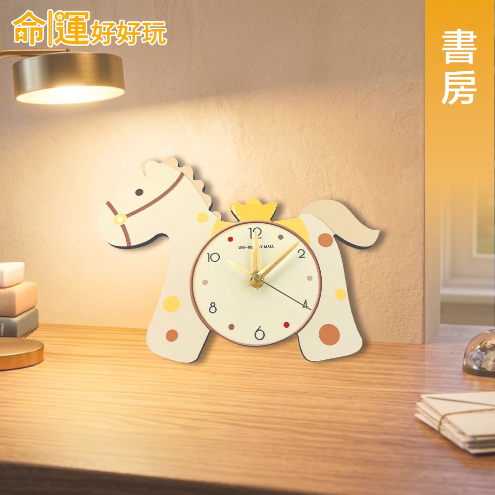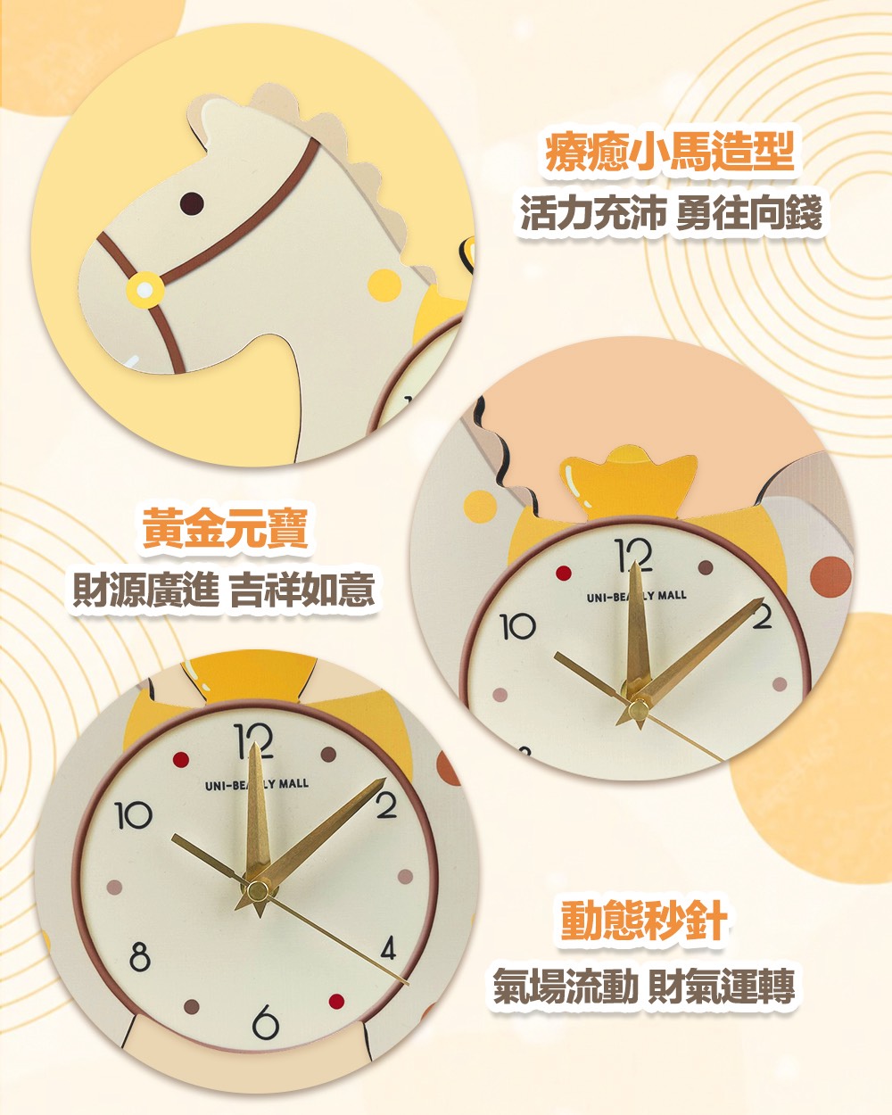 《馬上轉運風水鐘》北歐風童趣小馬設計融合開運元素,馬背上的金元寶不只是裝飾,更象徵著「馬上有錢」,藉由指針滴答交替的規律運行,將靜止的磁場轉化為活絡的循環能量,象徵著「財源滾滾、去舊迎新」。造型討喜、體積適中非常適合小家庭,可懸掛於牆上也可擺放於桌面,既美觀又實用,在壓力倍增的日常中,療癒轉動好運氣場,開啟時來運轉的最佳氣勢。