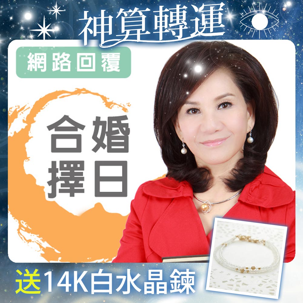 周映君老師為您重點提示,幫助您選出良辰吉日!因為結婚那天要進行很多儀式,必須選一個適合進行那些儀式的日子,所以「擇日」是選一個對雙方、雙方父母都有助益的日子,絕不能沖到雙方父母,挑選超級大吉日出嫁!
