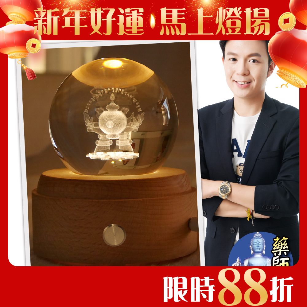 藥師佛寶瓶水晶球燈組設計,結合了「光能祈願補運」+「藥師佛心咒健康護持」+「八吉祥寶瓶療病淨化」+「六字真言化煞擋災」等最強四大保安康元素,特別設計包在水晶玻璃裡,以其折射的特質,驅除周遭諸惡煞氣、有效招引四面八方貴人,形成穩固的聚平安燈。藉由藥師佛大願點亮日日健康能量,並以光熱照亮你的人生光明路,解厄除難、護佑健康、增添福慧!適用於擺放客廳/玄關/長輩房/醫院病房/外出旅遊,不但可強化健康防護、又能避災又檔煞!