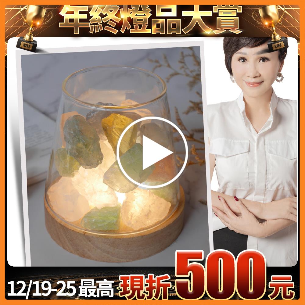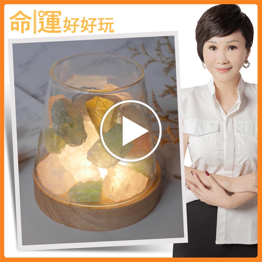 「五行晶耀補運燈」特選五種色彩瑰麗的五行天然礦石: 綠螢石(木) →粉水晶(火)→黃水晶(土)→白水晶(金)→天青石(水),經過特別搭配的五行礦石不但色彩美麗夢幻,同時形成強大的五行循環磁場,可化解環境中的風水煞氣,再搭配上暖色系燈光,能催旺個人氣場,以五行補足個人本命五行所缺!