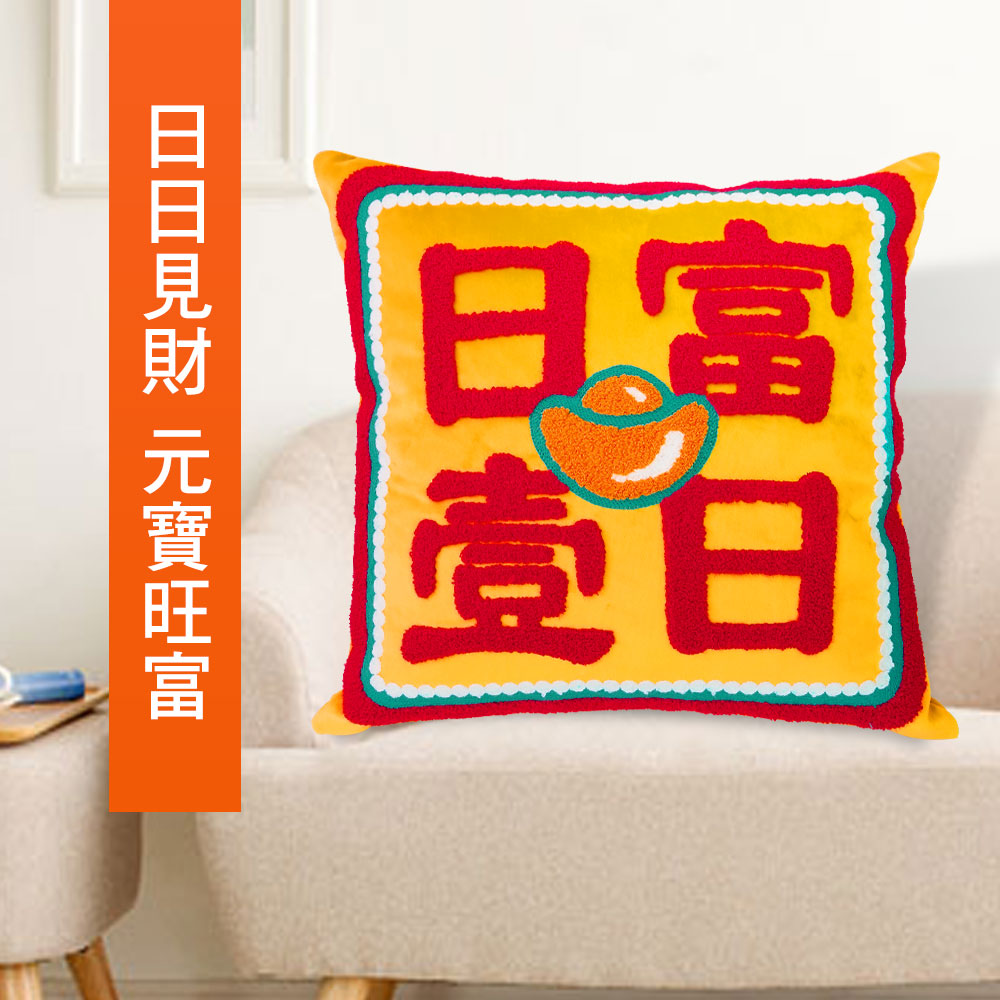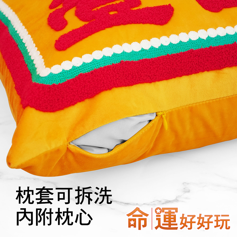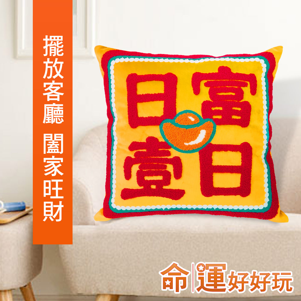 在家中或是辦公室擺放開運抱枕,除了實用性功能之外,抱枕的活潑配色能增添環境氣氛,也能招來喜氣磁場,而柔軟的絨毛布料搭配立體毛圈繡及鏈目繡的特殊刺繡工法,更大幅提升抱枕質感,使用起來格外療癒人心。