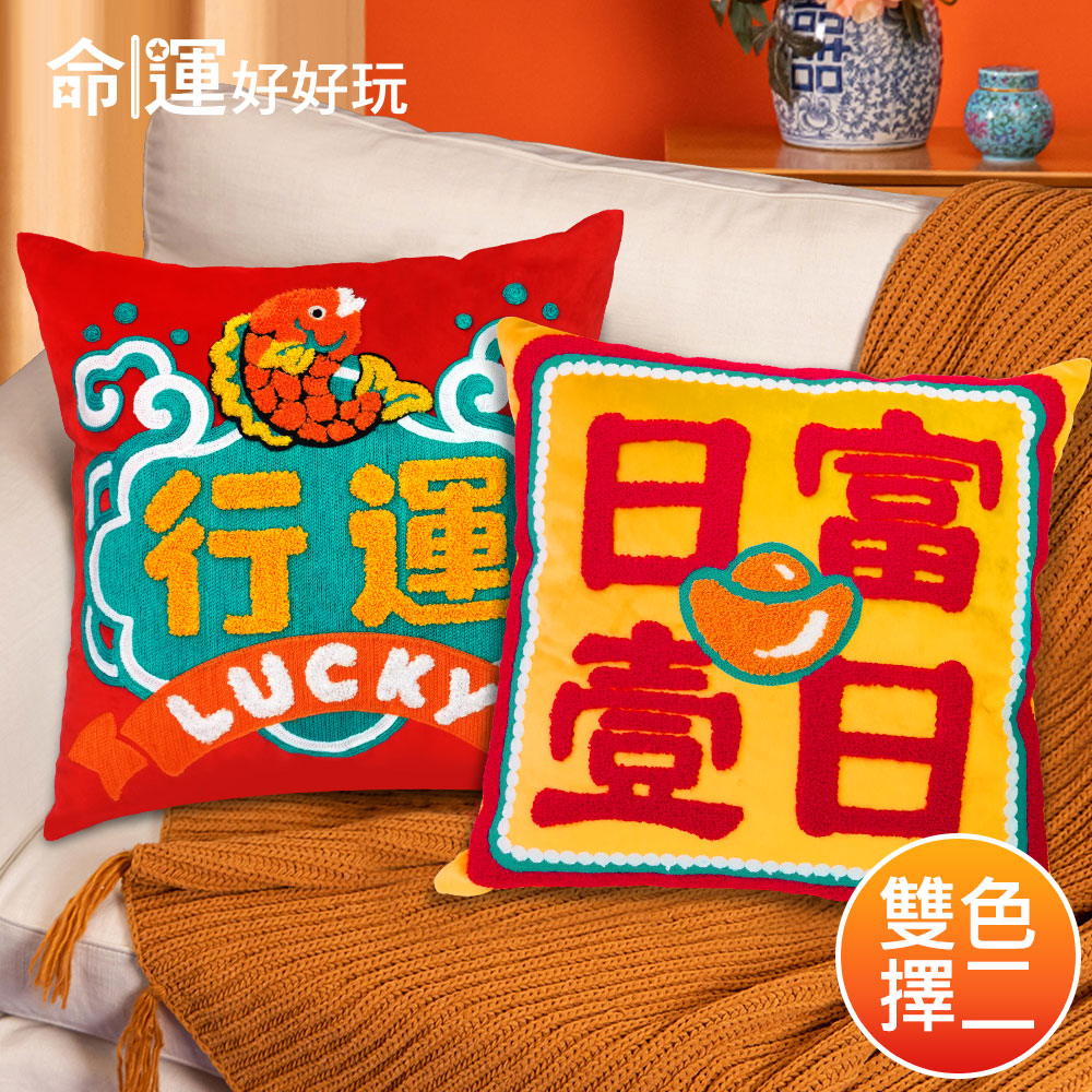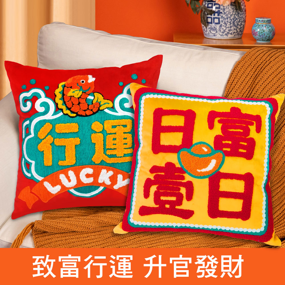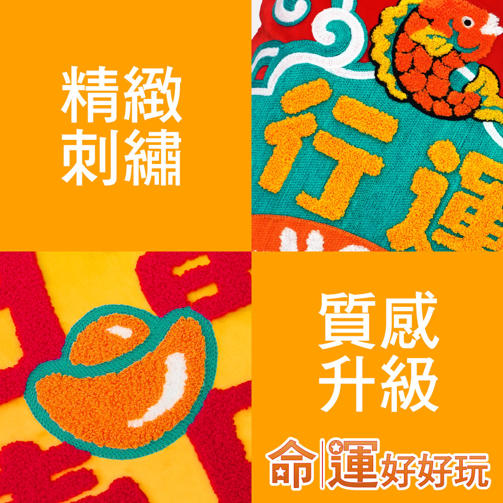 在家中或是辦公室擺放開運抱枕,除了實用性功能之外,抱枕的活潑配色能增添環境氣氛,也能招來喜氣磁場,而柔軟的絨毛布料搭配立體毛圈繡及鏈目繡的特殊刺繡工法,更大幅提升抱枕質感,使用起來格外療癒人心。