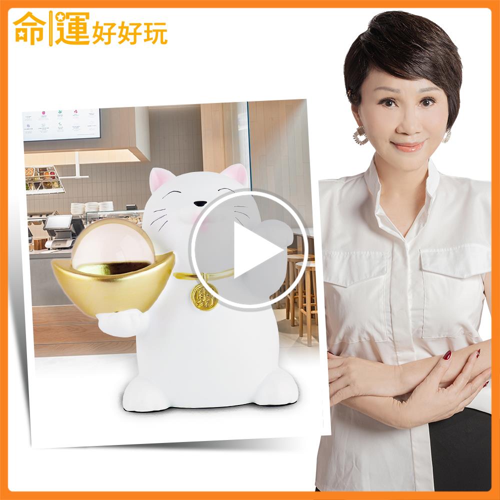 此款「貴客快來招財貓」不但可愛又療癒,一手捧元寶、一手招客的萌樣,能夠讓你輕鬆攬入各路客源與財富、獲得加倍好運。元寶上方的白水晶球可化解財煞、防止漏財,另有特別附贈八吉祥金幣錢母,放在水晶球下方能以祕法啟動招財貓的開運能量,獨家開運祕法是讓此款招財貓不僅僅只是一般擺件的關鍵設計!無論店鋪或居家裝飾都適合做為開業、喬遷禮的必送首選。