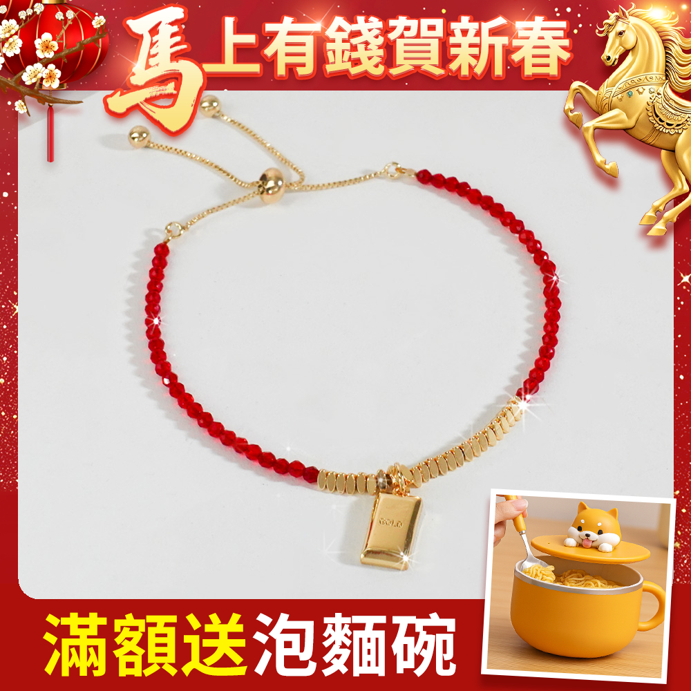 黃金磚紅晶線手鍊|紅線傳承 × 時尚升級