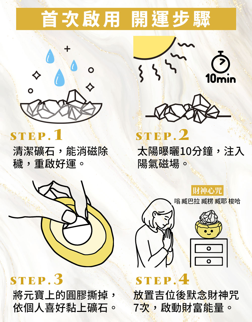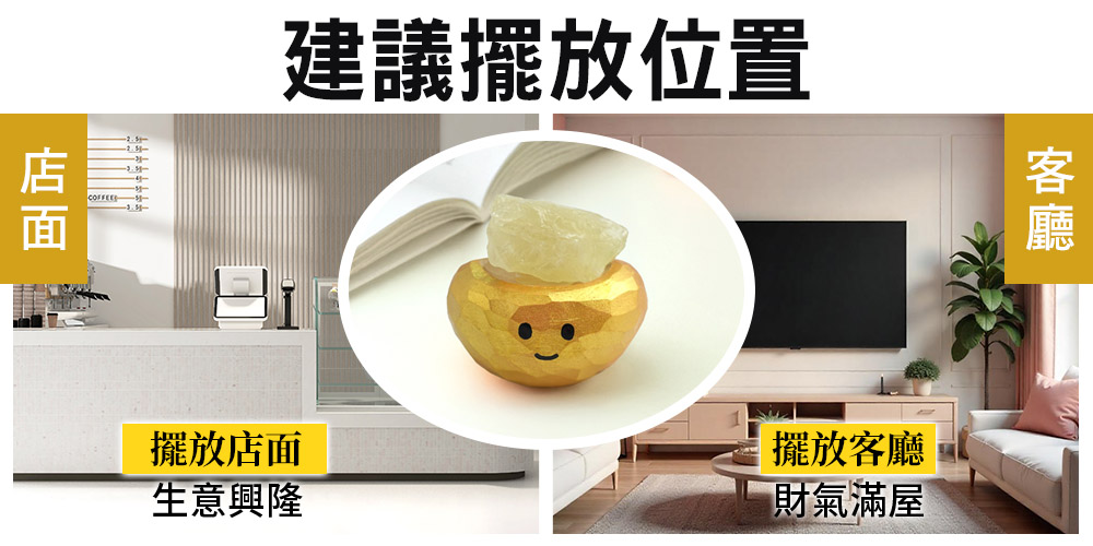 木雕元寶承載黃水晶原礦,像一座小型聚寶台,將散落的財氣慢慢「收進來」。黃財神心咒穩穩鎮在底部,低調不張揚,卻讓你的正偏財運一路加分。擺放在玄關迎財、客廳聚財、辦公桌強運,療癒的笑臉每日看了都舒心,讓看得見的美感,與看不見的好運,同步到位。招財黃晶元寶寶專為「催發財機、引財入庫」而生。黃水晶礦石匯聚八方財氣、化解破財與漏財煞、穩固財庫;元寶造型象徵財寶入庫且底部暗藏黃財神心咒,寓意財神護持、好運加乘。