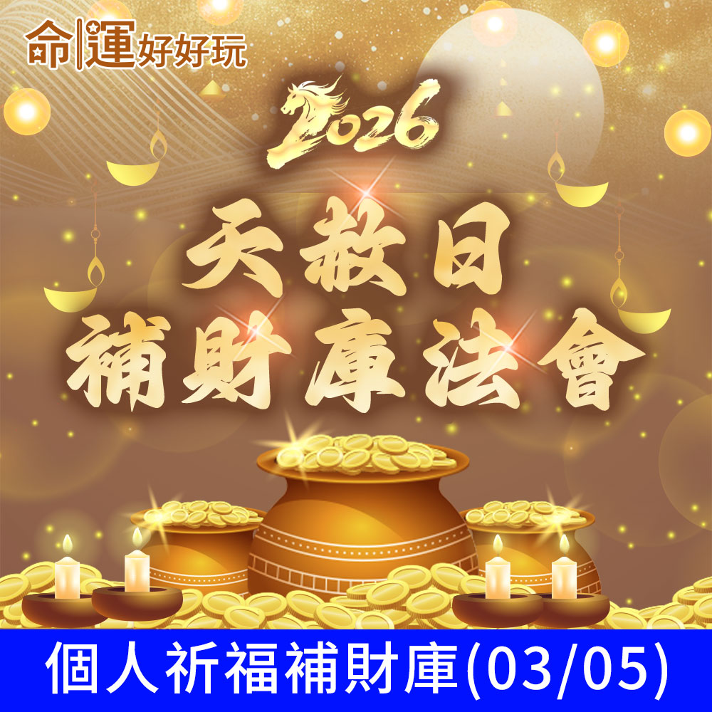 【天赦日補財庫法會】是針對以上問題設計的開運良方,幫你「修復財庫、提升磁場、扭轉乾坤」,報名就是為自己打開新局、突破低潮的關鍵第一步!更可替自己的2026財運打下黃金基礎!