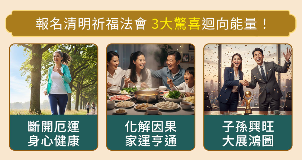 報名清明祈福法會,不僅是追思祈福,更能為全家帶來「三大驚喜」能量: