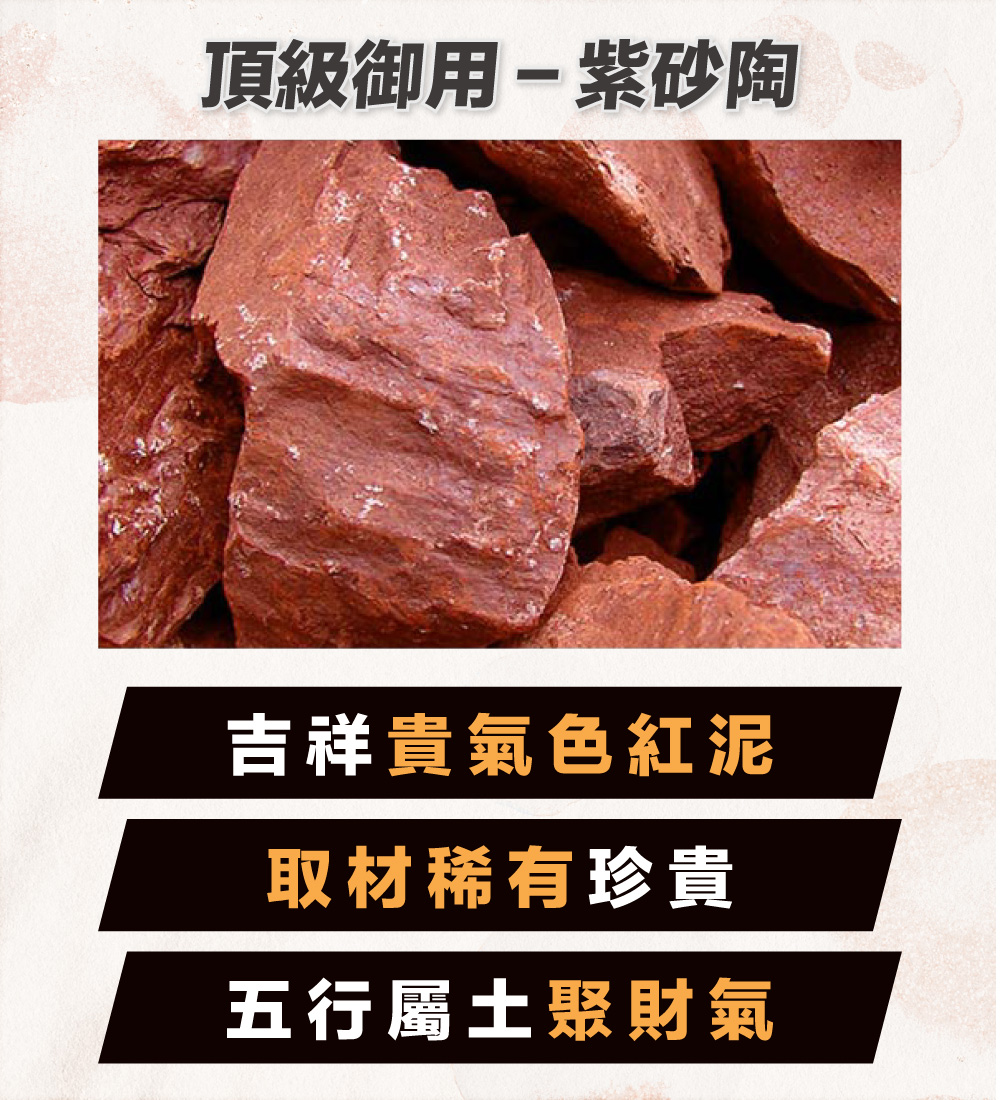 這款「藏寶鉅富貔貅」就是為漏財體質、守不住錢、花錢像開水龍頭的人量身打造。嚴選珍稀「紅紫砂」精製,紫砂泥素有「富貴土」之稱,手感溫潤沉穩、能量厚實;五行講究土生金,象徵財源從底子慢慢養起來,不是一時衝很快,而是越放越聚、越守越穩。