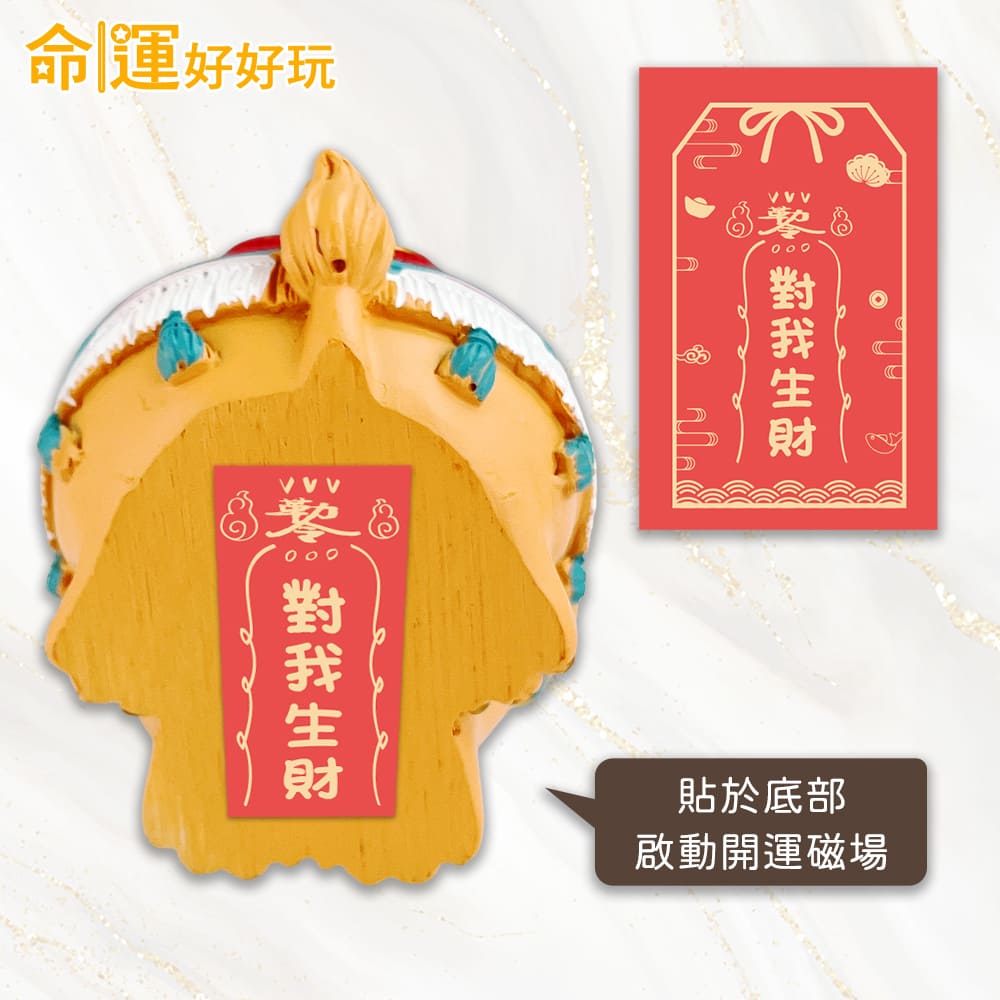 隨件另附「對我生財符」御守貼,可貼於底座,進而強化聚財能量,為空間打造招財納福的好運氣場。