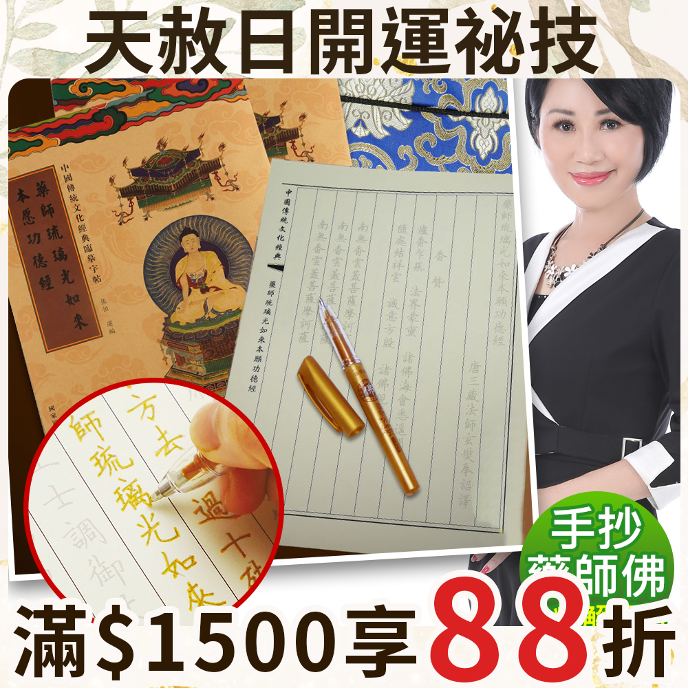 李玉珮老師推薦「手抄藥師佛健康福祿組」內為”藥師琉璃光如來本愿功德經”。