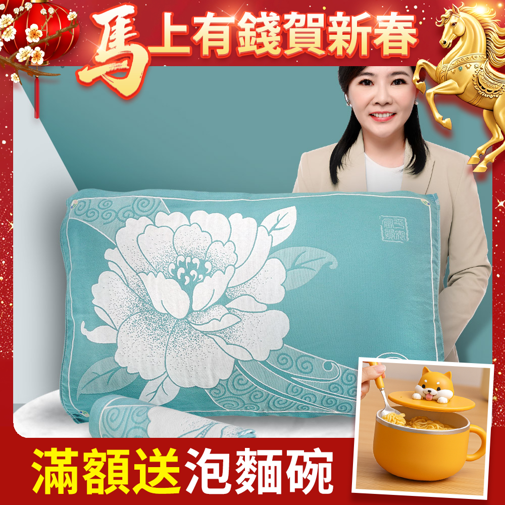 金運富貴牡丹枕巾x2入 兩層紗布夾絲、純棉。寬53cm*高78cm。